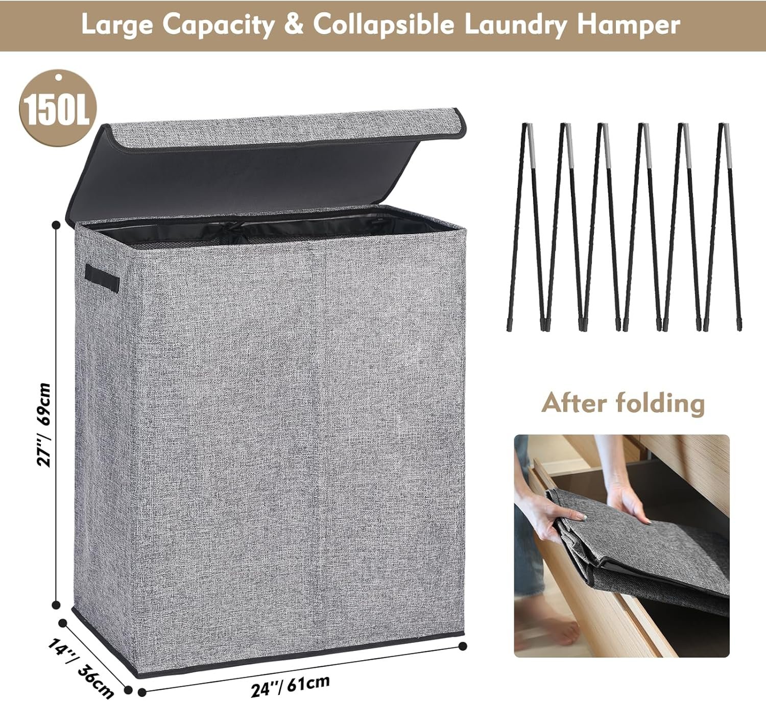 【Large Capacity】 With an extra-large 150L capacity, the grey laundry basket with lid has plenty of room to accommodate a large amount of laundry, making it ideal for daily household needs.