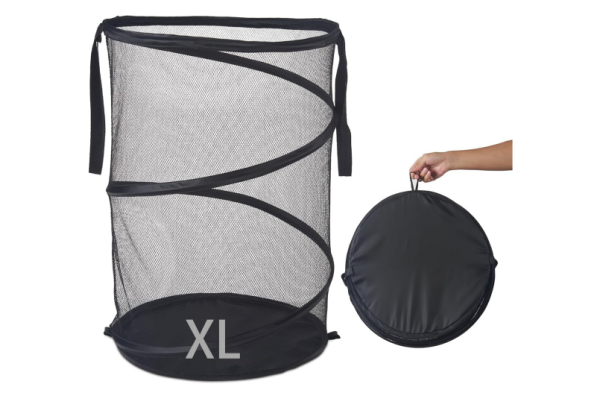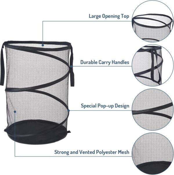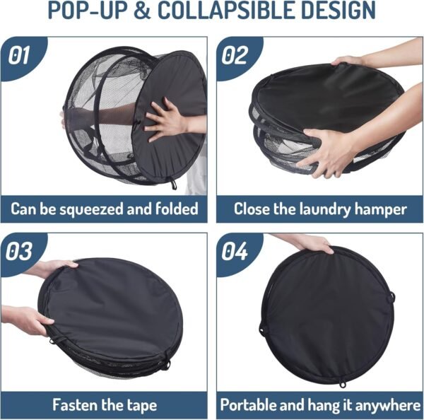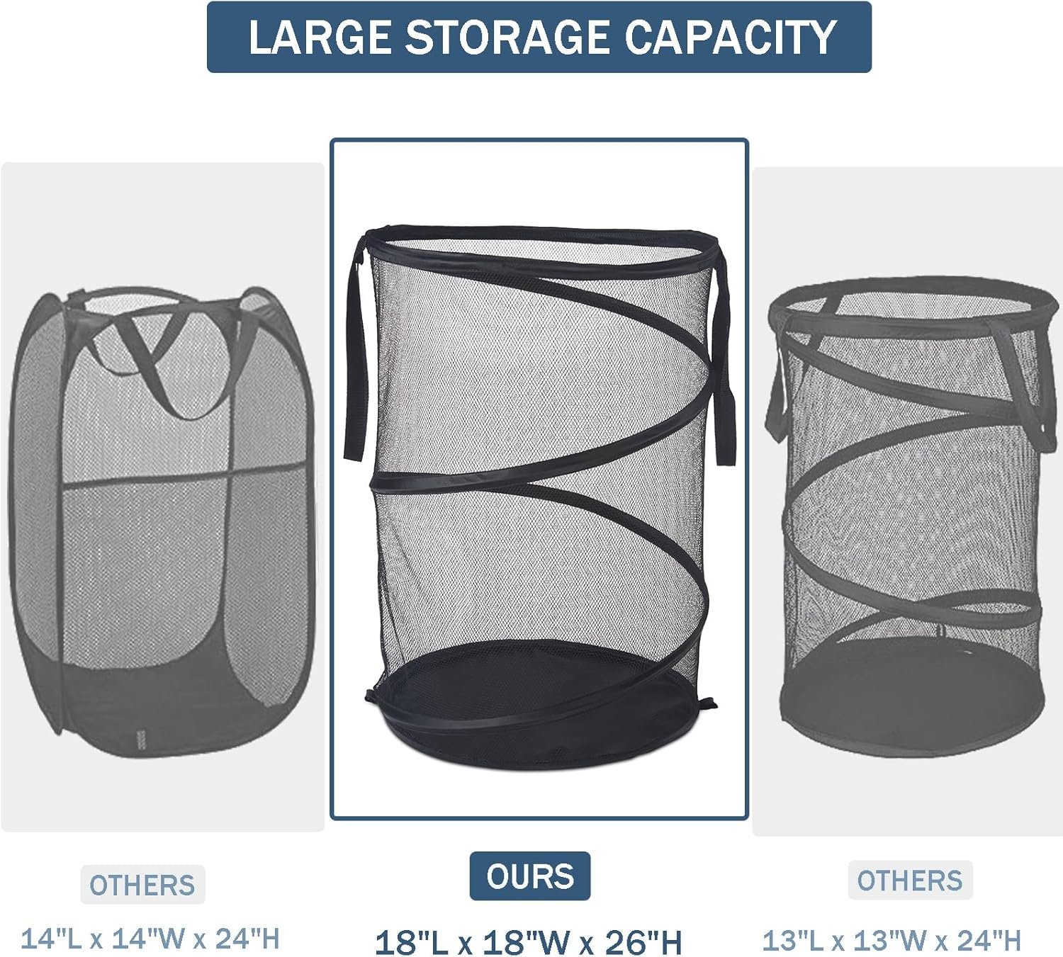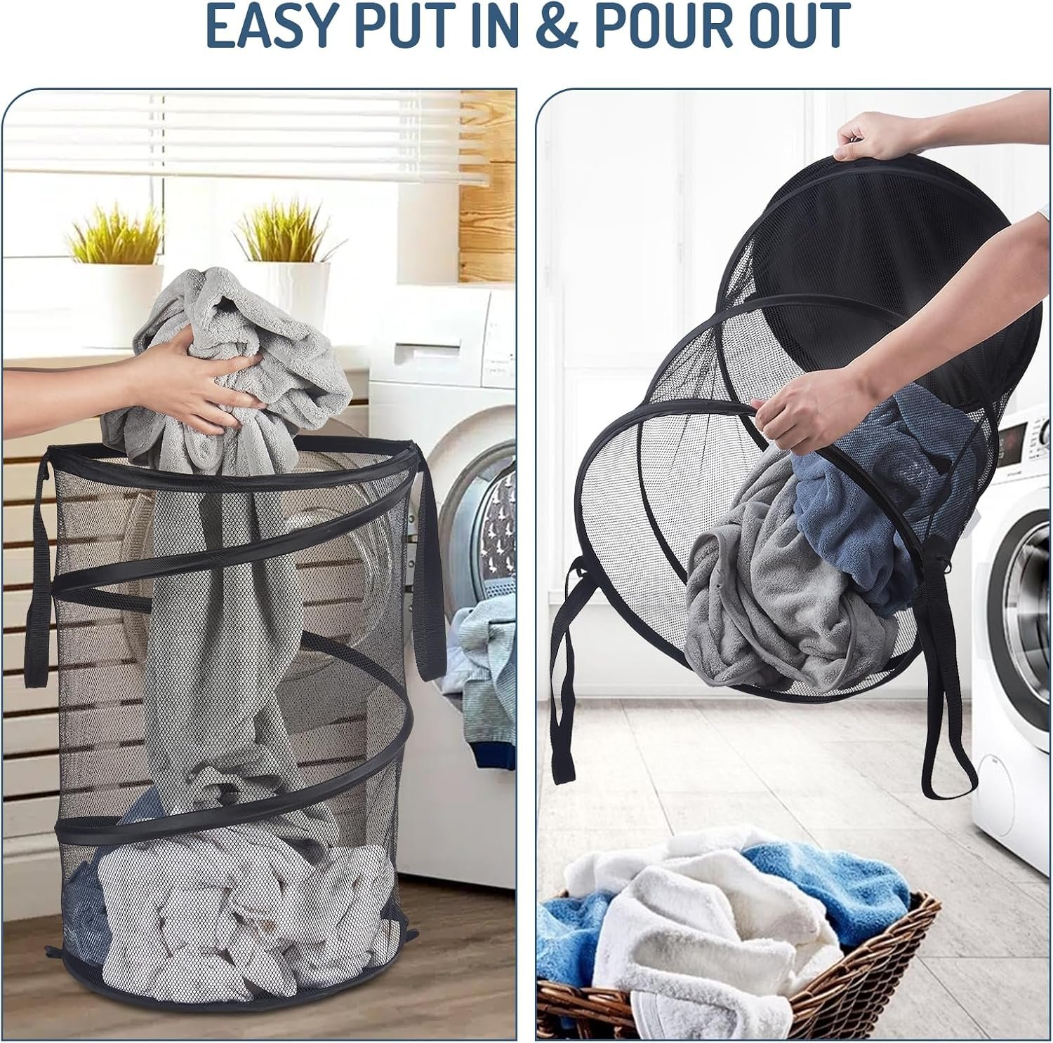 【Pop-Up and Collapsible Design】 This mesh laundry hamper can be easily folded and stored when not in use. Simply place it in a corner or hang it on the wall. When opened, it stays upright.