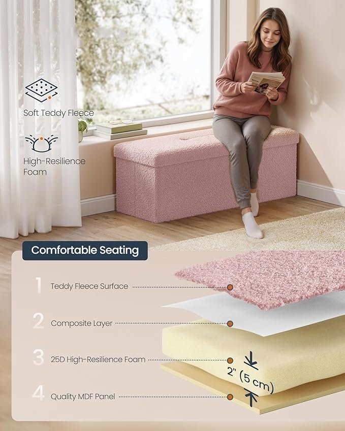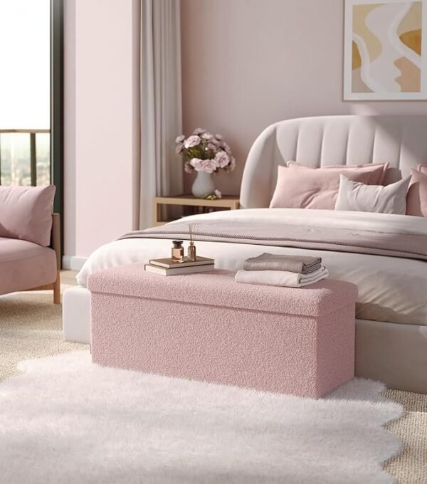 【Easy to Set Up & Fold Up】Set up this modern ottoman bench by inserting the bottom panel. Easily fold and store it when not in use.